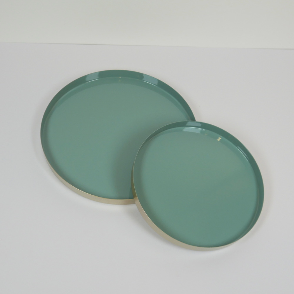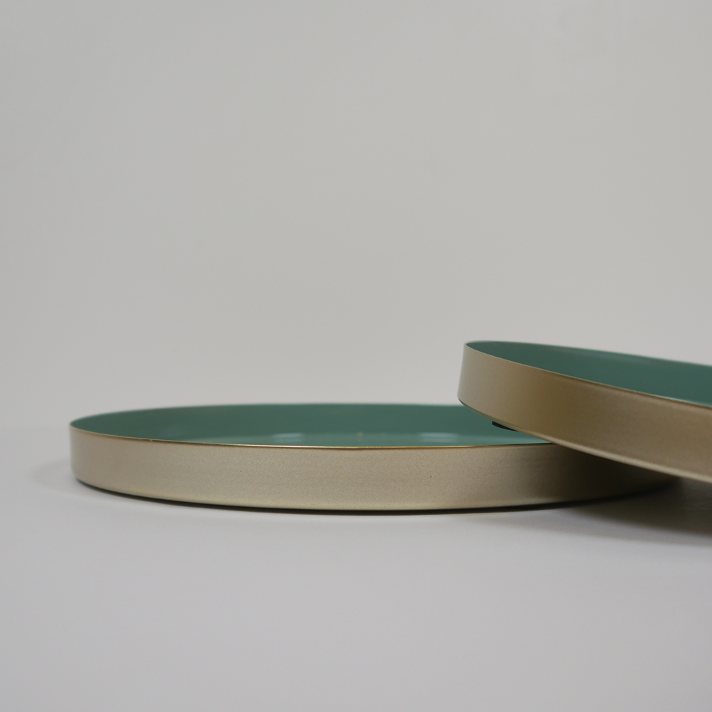 Deko Tablett Set aus Metall – 2-teilig in Gold & Grün