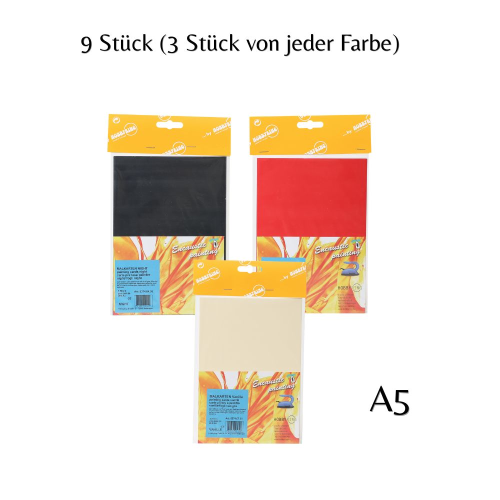 Unsere Malkarten wurden speziell für die Encaustic Wachsmalerei entwickelt. Das flüssige Encaustic Wachs dringt nicht in die Malkarte ein und lässt sich mühelos auf der Malkarte verschieben. Unsere Malkarten bestehen aus hitzebeständigem Malkarton mit verdichteter Oberfläche.