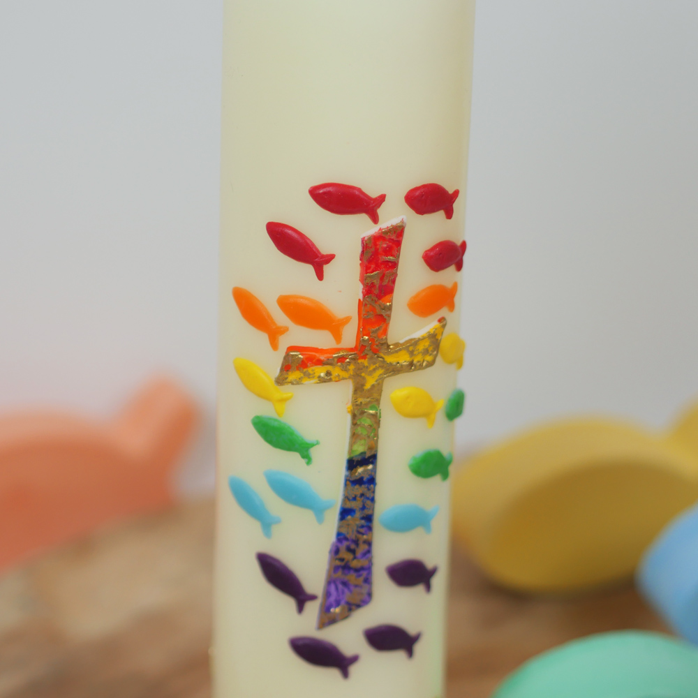 Wachsfische in Regenbogenfarben – Wachsdekor zum Kerzenverzieren